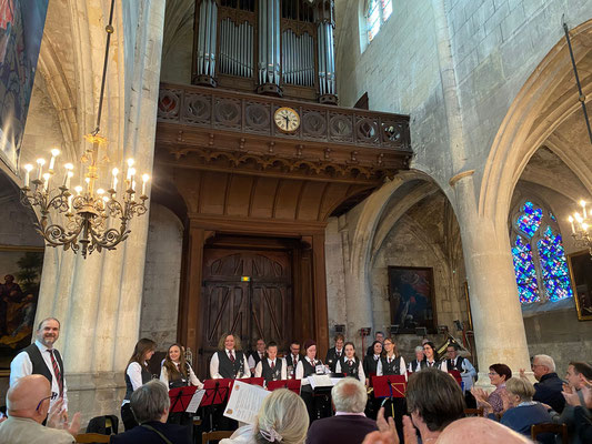 Vom 12. bis 14. September reisten wir nach Précy-sur-Oise, um gemeinsam mit unserer Partnergemeinde das 30-jährige Bestehen der Freundschaft zwischen Hütschenhausen und Précy-sur-Oise zu feiern. Zusammen mit dem Partnerschaftsverein machten wir uns am Freitag im Bus auf den Weg – einige von uns nahmen gleich auch ihre Familien und Kinder mit. Der Samstag begann mit einem eindrucksvollen Besuch des prachtvollen Schlosses Chantilly. Am Nachmittag folgte unser musikalischer Höhepunkt: ein Konzert in der Kirche von Précy-sur-Oise, das bei unserem Publikum – besonders bei unseren französischen Freunden – große Begeisterung auslöste. Mit unserer Auswahl konnten wir zeigen, wie zeitgemäß und mitreißend Musik für Blasorchester und Schlagwerk sein kann. Am Abend ließen wir den Tag bei einem gemeinsamen Empfang festlich ausklingen. Das Wochenende schlossen wir mit einem herzlichen Abschieds-Barbecue am Sonntag ab und traten voller schöner Eindrücke die Heimreise an. Unser besonderer Dank gilt dem Partnerschaftsverein, der nicht nur die Fahrt organisierte, sondern auch unsere Unterbringung in Hotels ermöglichte – unterstützt durch den Deutsch-Französischen Bürgerfonds, der mit seiner Förderung diesen kulturellen Austausch überhaupt erst möglich machte.